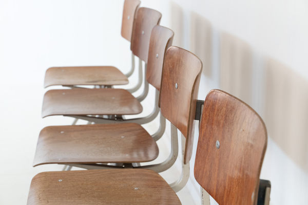 オランダインダストリアルデザインのアイコン的存在である、Friso Kramer(フリソ・クラマー)のリザルトチェア。70年代前半にAHREND DE CIRKEL社によって作られたものです。当店で取り扱っている50Sのエディションと、シート、背もたれのデザインが微妙に異なります。50Sの方がシートの横幅が広く、よりプリミティブなラインになっており、プライウッドもかなり厚手のものを使用してあります。70Sのエディションは、シートの幅がより細めのラインで、ややシャープな印象です。脚のラインからシート裏まで全てが美しい、素晴らしいデザインです。勿論座り心地や使い勝手も抜群で、実用的な椅子です。数がありますので、お店や事務所用にまとめてお求めいだたけます。